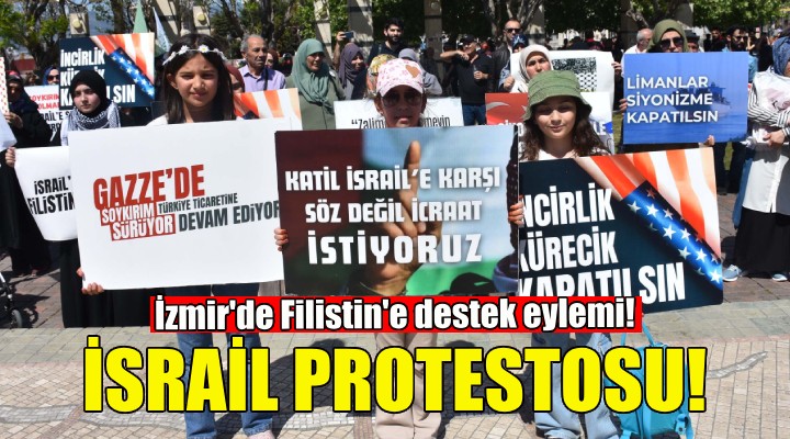 Özgün Eğitim Kültür Yardımlaşma ve Dayanışma Derneği (ÖZGÜN- DER) öncülüğünde bir grup, çocuk ve yaşlıların da katılımıyla Konak Atatürk Meydanı'nda bir araya geldi. Filistin'e destek veren kalabalık, İsrail'e tepkilerini dile getirdikleri dövizler taşıyıp, "Çocuklar ölüyor devletler uyuyor" ve "Dur de dur de soykırıma dur de" sloganları attı.