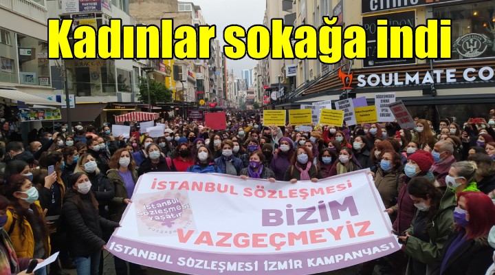 Alsancak Kıbrıs Şehitleri Caddesi'nde bulunan Türkan Saylan Kültür Merkezi önünde toplanan kadınlar, “İstanbul Sözleşmesi Bizim Vazgeçmeyiz” yazılı pankart taşındı. İstanbul Sözleşmesi'nin feshedilmesini protesto eden yüzlerce kadın, “Dünya yerinden oynar kadınlar özgür olsa”, “Bu daha başlangıç mücadeleye devam”, "İnadına Özgürlük" sloganları attı.