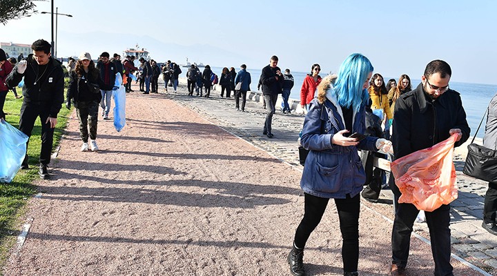 İzmir’de bugün iyilik vardı. Çoğunu üniversite öğrencilerinin oluşturduğu gönüllü ekip bu bugün Cumhuriyet Meydanı’ndan Gündoğdu Meydanı’na kadar kıyı temizliği yaptı. Dokuz Eylül Üniversitesi öğrencisi Yaren Yıldırım, amaçlarının toplumu bilinçlendirmek olduğunu söyledi.