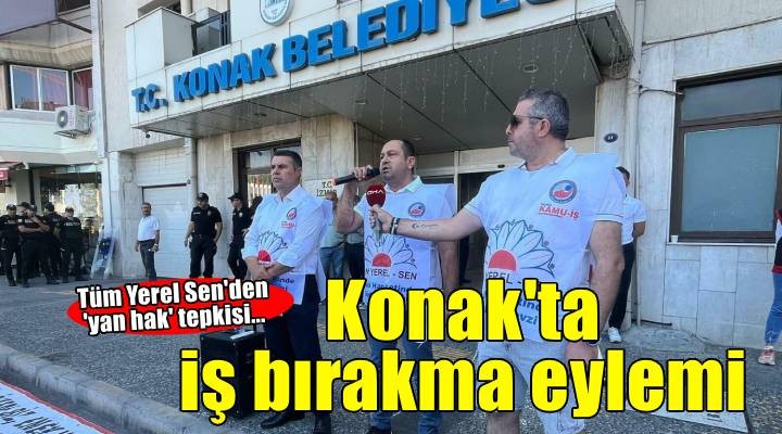 Konak Belediyesi'nde görev alan ve Tüm Yerel-Sen'e üye olan memurlar, SDT ve yan haklarını ocak ayından beri alamadıkları gerekçesiyle bir günlük iş bırakma eylemi kararı aldı. Bu kapsamda belediye binasının önünde bir araya gelen memurlar basın açıklamasında bulundu. Basın açıklamasını okuyan Tüm Yerel-Sen İzmir 2 No'lu Şube Başkanı Murat Bekar, "Son dönemlerde belediyelerimizde kazanmış olduğumuz haklarımızın ödenmemesi ciddi mağduriyetlere yol açmaktadır. SDT'nin, arazi tazminatlarımızın ve ikramiyelerimizin zamanında yatırılmaması emekçilerin yasal haklarının gaspıdır" dedi.