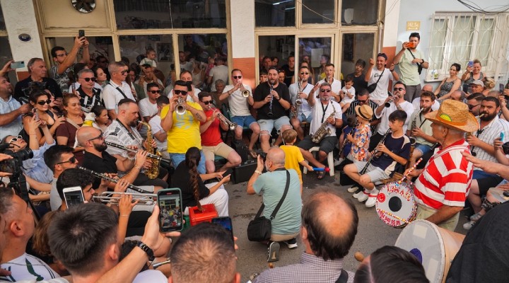 Bornova ilçesi Çamdibi semtindeki "Müzisyenler Kıraathanesi" önünde düğün, kına gecesi, arife günleri gibi özel günlerde bandoyla kutlama yapan müzisyenler, Kurban Bayramı arifesinde bir araya geldi.
