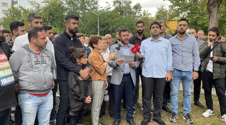 Bayraklı ilçesindeki Mansuroğlu Mahallesi'nde bulunan Zeki Müren Parkı içindeki Baro Bahçe önünde bir araya gelen grup üyeleri, sloganlar attı.