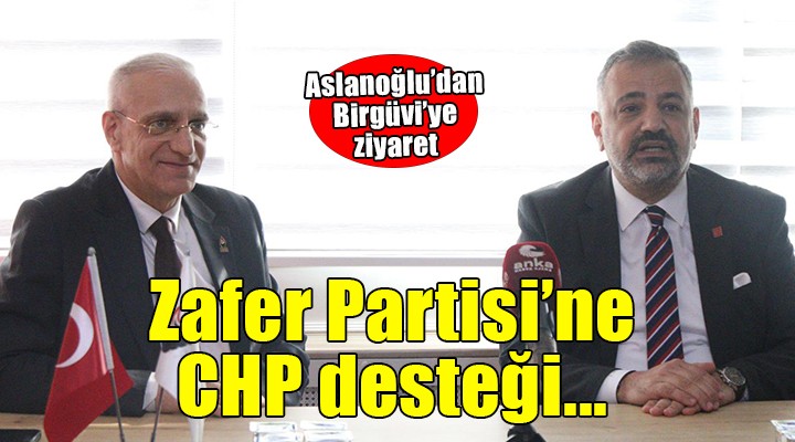 CHP İzmir İl Başkanı Şenol Aslanoğlu, Zafer Partisi İzmir İl Başkanlığı'nı ziyaret etti. Aslanoğlu, Zafer Partisi İzmir İl Başkanı Naşit Birgüvi'ye "Yanınızdayız" mesajını verdi.