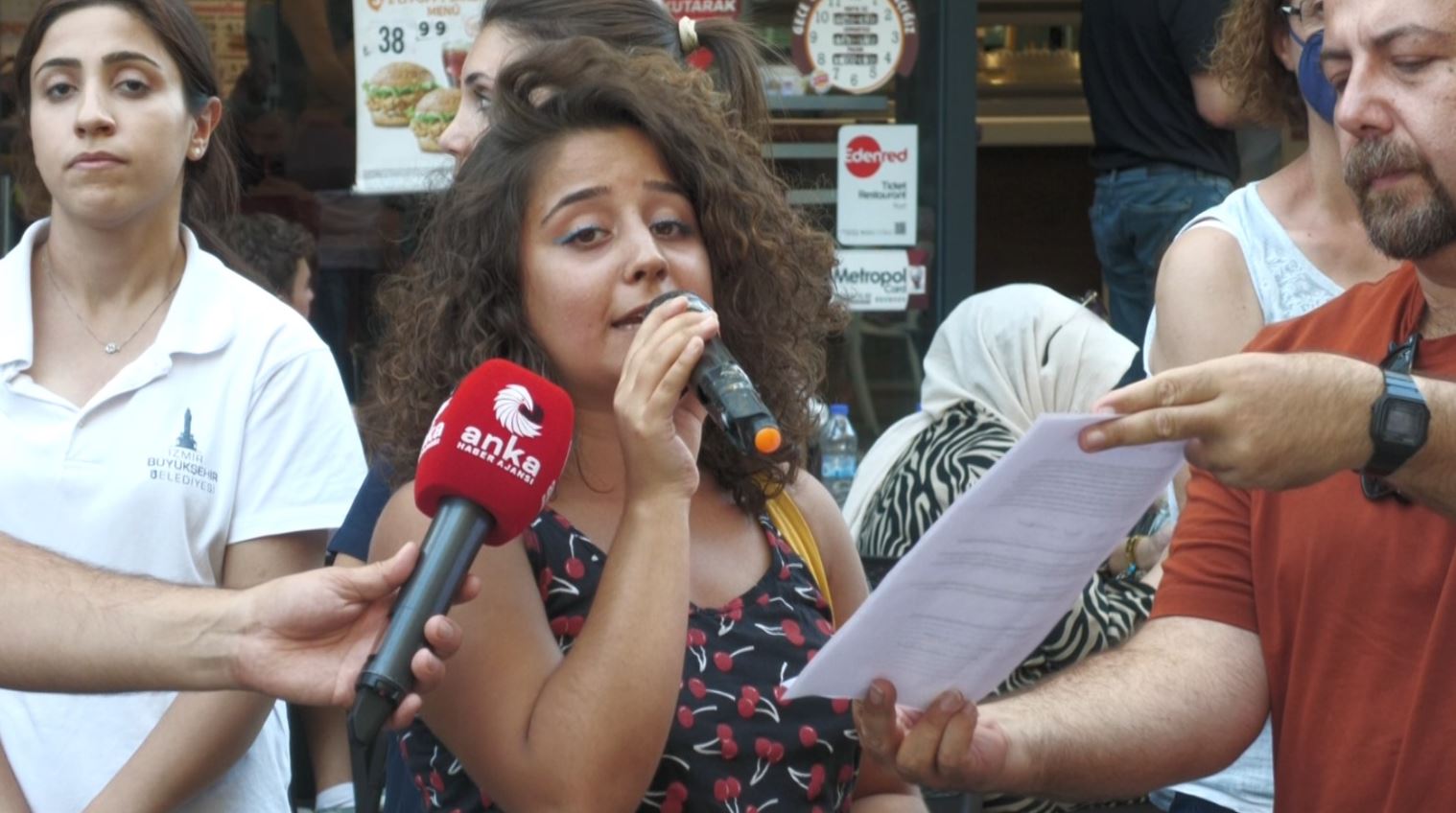 SONKALEİZMİR-İzmir Müzisyenler Derneği, Turizm, Eğlence ve Hizmet İşçileri Sendikası ile Sokak Sanatçıları Derneği üyeleri, Muğla'da şarkı söylediği eğlence mekanında 24 Temmuz'da öldürülen Zehra Bayır için Konak Türkan Saylan Kültür Merkezi önünde toplandı. "Kölece çalışma düzenine son. İnsanca güvenceli çalışmak istiyoruz" pankartı açan grup "Zehra Bayır ölümsüzdür", "Güvenceli çalışmak hakkımızdır", "Sermaye mezara, halk iktidara" sloganları atıldı.