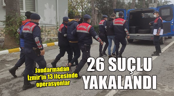 SONKALEİZMİR-İzmir İl Jandarma Komutanlığı ekipleri, 1-13 Aralık 2022 tarihleri arasında aranan suçlulara yönelik operasyonlar düzenledi. Selçuk, Kemalpaşa, Menderes, Aliağa, Bayındır, Torbalı, Ödemiş, Kınık, Buca, Bergama, Kiraz, Beydağ ve Dikili'deki çalışmalarda 2 yıldan 14 yıla kadar kesinleşmiş hapis cezaları bulunan 26 kişi yakalandı.