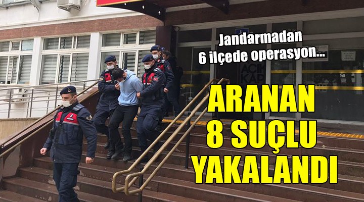 SONKALEİZMİR-Izmir İl Jandarma Komutanlı ekipleri, haklarında kesinleşmiş hapis cezaları bulunan 8 suçluyu yakalamak için 3-10 Mayıs tarihleri arasında Kiraz, Menderes, Foça, Kemalpaşa, Torbalı ve Dikili'de operasyonlar düzenledi.