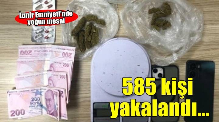 İzmir İl Emniyet Müdürlüğü Asayiş Şube Müdürlüğü Motosikletli Polis Timleri Amirliği ekipleri, 5-11 Temmuz tarihleri arasında istihbari çalışmalar ve uygulamalar gerçekleştirdi. Çalışmalarda 9 ruhsatsız tabanca, 7 ruhsatsız pompalı tüfek, 6 kurusıkı tabanca, farklı türlerde 791 gram uyuşturucu madde, 5 bin 911 uyuşturucu hap, 3 çalıntı motosiklet ve 3 şasesi kazınmış motosiklet ele geçirdi.