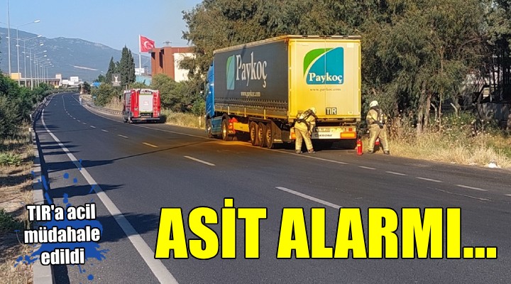 İzmir-Ankara Karayolu'nda Bornova'dan Aydın'ın Söke ilçesine giden 35 PK 299 plakalı TIR şoförü, Taşkahve mevkisinde TIR'ın dorsesinden sızıntısı olduğunu fark etti.