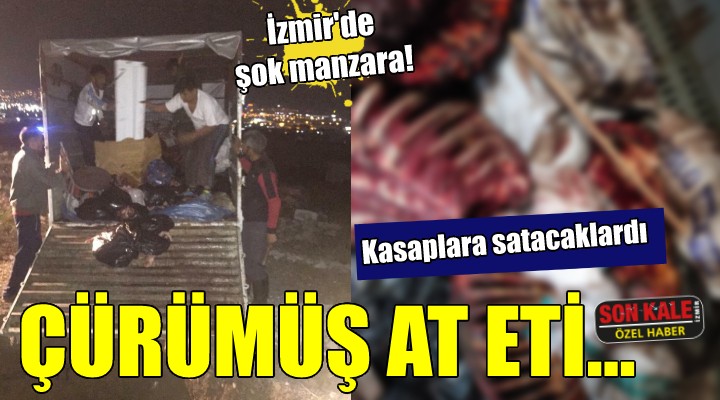 SONKALEİZMİR (ÖZEL HABER) - Alınan bir istihbarı değerlendiren Bornova İl Emniyet Müdürlüğü ekipleri, Çamdibi'nde kıyafetlerindeki kurumuş kan izinden şüphelenilen F.S., M.S., A.Ö.'yü durdurdu. Şüphelilerin kullandığı iki kamyonetin kasasında yapılan aramada çürümeye yüz tutmuş etler ele geçirildi. Bornova Belediyesi Zabıta Müdürlüğü ekiplerinin de destek verdiği operasyonda, etlerin yaşlı-hasta atlara ait olduğu, Aydın'da kesilip İzmir'e getirildiği belirlendi.
