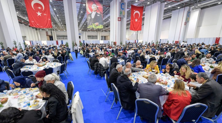 İzmir Büyükşehir Belediye Başkanı Tunç Soyer bin 293 muhtar ve azalarıyla Fuar İzmir’de düzenlenen iftar yemeğinde bir araya geldi. Semazen gösterisinin yanı sıra duaların da okunduğu iftar yemeğine İzmir Büyükşehir Belediyesi Genel Sekreter Yardımcıları Ertuğrul Tugay, Özgür Ozan Yılmaz, Suphi Şahin ile İZSU Genel Müdürü Ali Hıdır Köseoğlu’nun yanı sıra İZFAŞ Genel Müdürü Canan Karaosmanoğlu Alıcı da katıldı. Muhtarları temsilen Kemalpaşa Dereköy Mahalle Muhtarı Hüseyin Kanlı, Başkan Soyer’e plaket takdim etti.