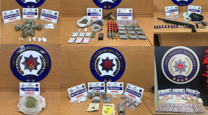 İl Emniyet Müdürlüğü Narkotik Suçlarla Mücadele Şube Müdürlüğü ekipleri, kentte uyuşturucu satıcılarına yönelik mücadelesini sürdürüyor. Bu kapsamda ekiplerin, 1- 7 Mart tarihleri arasında yaptığı uygulamalar ve düzenlenen operasyonlarda, 4 kilo 663 gram esrar- skank, 33 gram eroin, 1 kök kenevir, 2 kilo 124 gram sentetik kannabinoid, 242 gram metamfetamin, 274 ecstasy, 3 bin 354 yeşil reçeteyle satılan ilaç, uyuşturucudan elde edildiği değerlendirilen 7 bin 10 lira, 5 tabanca, 2 tüfek ile 6 şarjör ve 196 fişek ele geçirildi. Gözaltına alınan 67 şüpheliden 17’si sevk edildiği adliyede çıkarıldığı mahkemece tutuklandı.