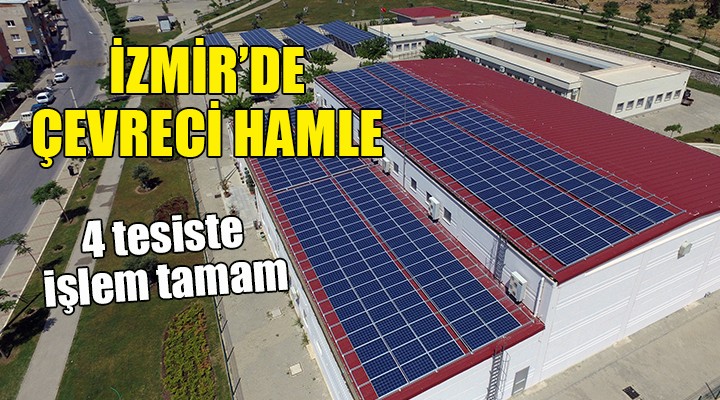 Gelecek nesillere daha temiz ve yaşanır bir kent bırakmaı amaçlayan İzmir Büyükşehir Belediyesi, tesislerinin elektrik ihtiyacını yenilenebilir enerji kaynaklarından karşılamak için çalışmalarını sürdürüyor. Büyükşehir Bergama Mezbahası’na 74, Aliağa İtfaiyesi’ne 68, Uzundere Çok Amaçlı Spor Salonu’na 35, Çiğli Aile Danışma Merkezi'ne 25 kilovatlık kurararak bu tesislerin çatılarını enerji tesisine çevirdi. Bergama Mezbahası, Aliağa İtfaiyesi, Uzundere Çok Amaçlı Solonu elektrik ihtiyacını güneş panellerinden karşılamaya başladı. Çiğli Aile Danışma Merkezi’ndeki güneş panellerinin kurulumu tamamlandı, elektrik üretimi ise bir ay içinde başlayacak. Bu dört tesisteki güneş panellerinden yılda toplam 280 bin kilovat saat elektrik elde edilecek ve yılda 140 tonluk karbondioksit salımının önüne geçilecek.