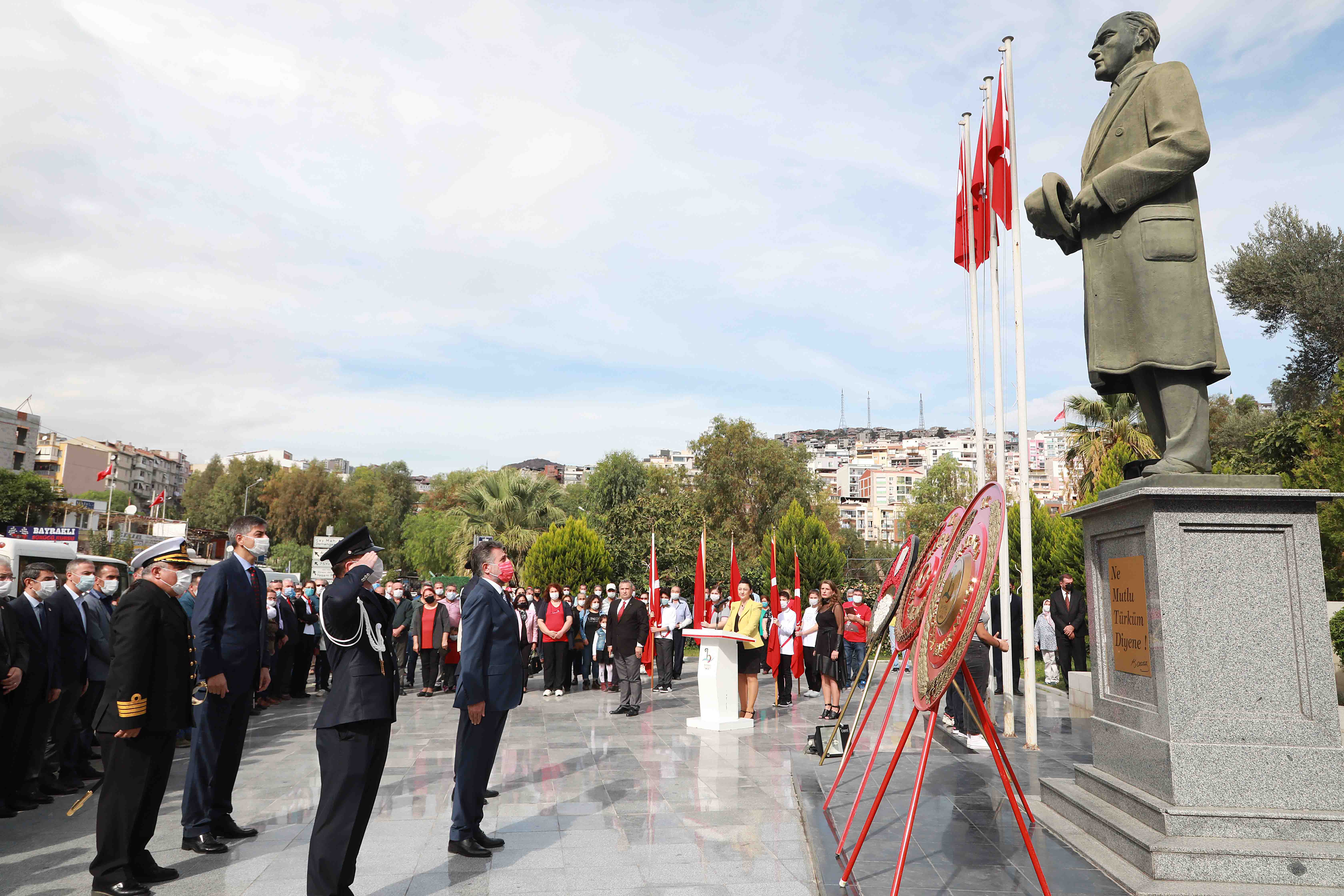 Kutlama programı kapsamındaki resmi tören de 28 Ekim'de yapıldı. İlçe protokolü, Ulu Önder Mustafa Kemal Atatürk'ün anıtına çelenkler sundu. Saygı duruşu ve İstiklal Marşı ile başlayan etkinliğe Başkan Sandal'ın yanı sıra, Bayraklı Kaymakamı İbrahim Süha Karaboran, Ege Ordusu Komutanlığı'ndan Bülent Akbaş, siyasi parti temsilcileri ve vatandaşlar katıldı.
