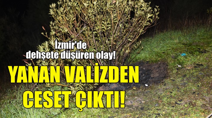 Valizden çıkartılan kimliği belirsiz erkek cesedinin 40'lı yaşlarda olduğu belirtildi. Ceset, savcı ve jandarma ekiplerinin incelemesinin ardından otopsi yapılması ve kimliğinin belirlenmesi için İzmir Adli Tıp Kurumu morguna kaldırıldı. Olayla ilgili başlatılan geniş çaplı soruşturma kapsamında, Jandarma Suç Araştırma Timi (JASAT), valizi yol kenarına bırakıp ateşe veren şüpheli ya da şüphelilerin yakalanması için çalışma başlattı.