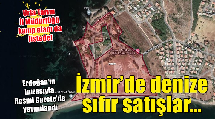 SONKALEİZMİR-Resmi Gazete'de Cumhurbaşkanı Recep Tayyip Erdoğan'ın imzasıyla yayınlanan kararla İzmir'in Çeşme, Urla ve Seferihisar ilçelerindeki 14 taşınmaz özelleştirme kapsamına alındı. Kararla, Türkiye genelinde 99 taşınmaz satışa çıkarılırken, İzmir'deki denize sıfır bölgeler dikkat çekti.