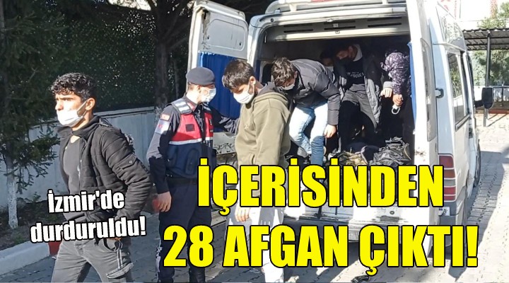 Şüphe üzerine durdurulan minibüste 28 kaçak Afgan göçmen olduğu belirlendi. Göçmenleri taşıyan organizatör gözaltına alınırken 28 Afganistan uyruklu şahıs ise Harmandalı Geri Gönderme Merkezi'ne teslim edildi.