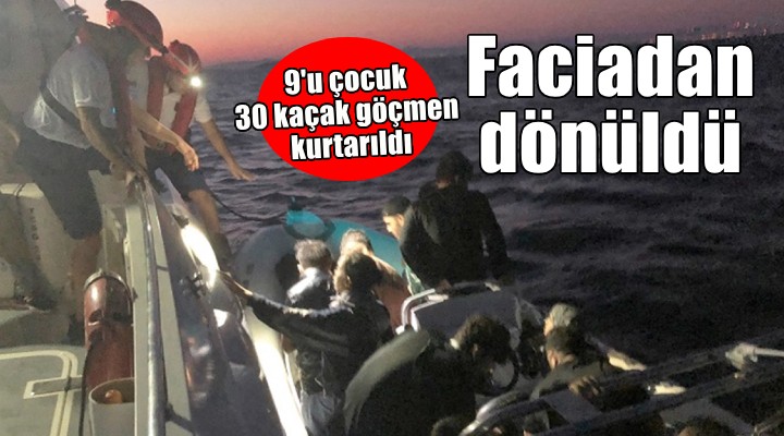 Ekipler, lastik bottaki 9'u çocuk 30 düzensiz göçmeni kurtardı, göçmen kaçakçısı olduğu iddiasıyla 1 şüpheli gözaltına alındı.