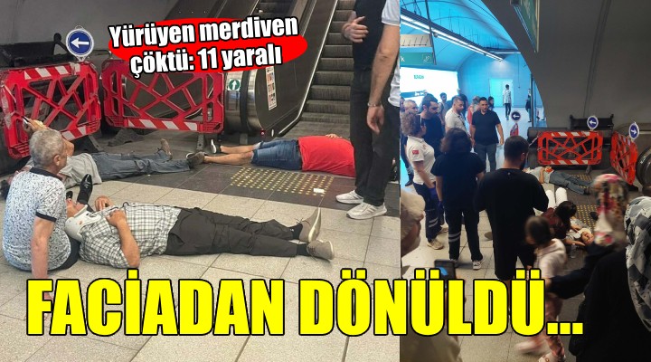 Konak ilçesi Üçyol Metro İstasyonu'ndan çıkışı sağlayan yürüyen merdiven, üzerinde yolcular bulunduğu sırada henüz belirlenemeyen nedenle bir anda ters yönde hareket etmeye başladı.