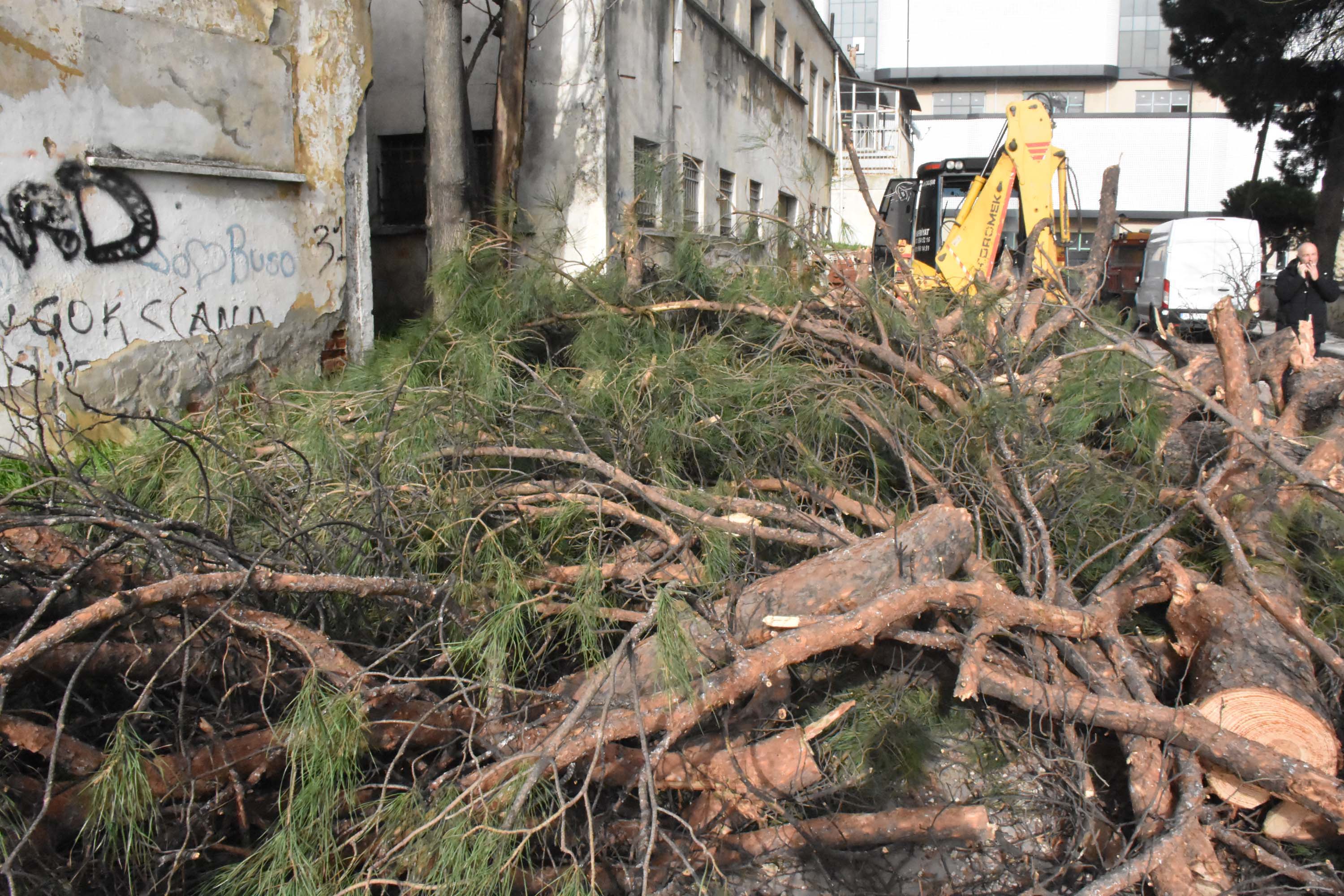 Esat Paşa Mahallesi Yüksel Kayan Caddesi’nde bugün öğle saatlerinde kuvvetli rüzgar nedeniyle bir çam ağacı devrilip park halindeki bir otomobilin üzerine düştü. Olayın ardından ekipler tarafından ağaç, gövdesinden kesilerek otomobilin üzerinden kaldırıldı.