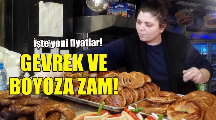 İzmir Pide, Gevrek İmalatçıları ve Benzerleri Esnaf Sanatkarlar Odası'nın zam talebi üzerine İzmir Esnaf ve Sanatkarlar Odaları Birliği Gıda Komisyonu toplandı. Komisyonda değerlendirilen zam talebi kabul edildi. Resmi yazışmaların tamamlanması sonrası 4 liradan satılan gevrek, yüzde 25 zamlanarak 5 lira oldu. Gevrekteki yeni fiyat, pazartesi günü itibarıyla geçerli olacak. Boyoz, poğaça, peynir ve yumurtanın tane fiyatları da 5 lira oldu. Kumru ise 15 liradan satılacak.