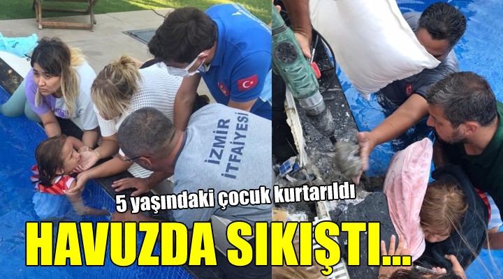İzmir Büyükşehir Belediyesi İtfaiyesi Daire Başkanlığı'nda görevli paramedikler tarafından ilk muayenesi yapılan küçük kızın kurtarılması için AKS 110 ve itfaiye ekiplerince havuzdaki suyun bir kısmını tahliye edildi.