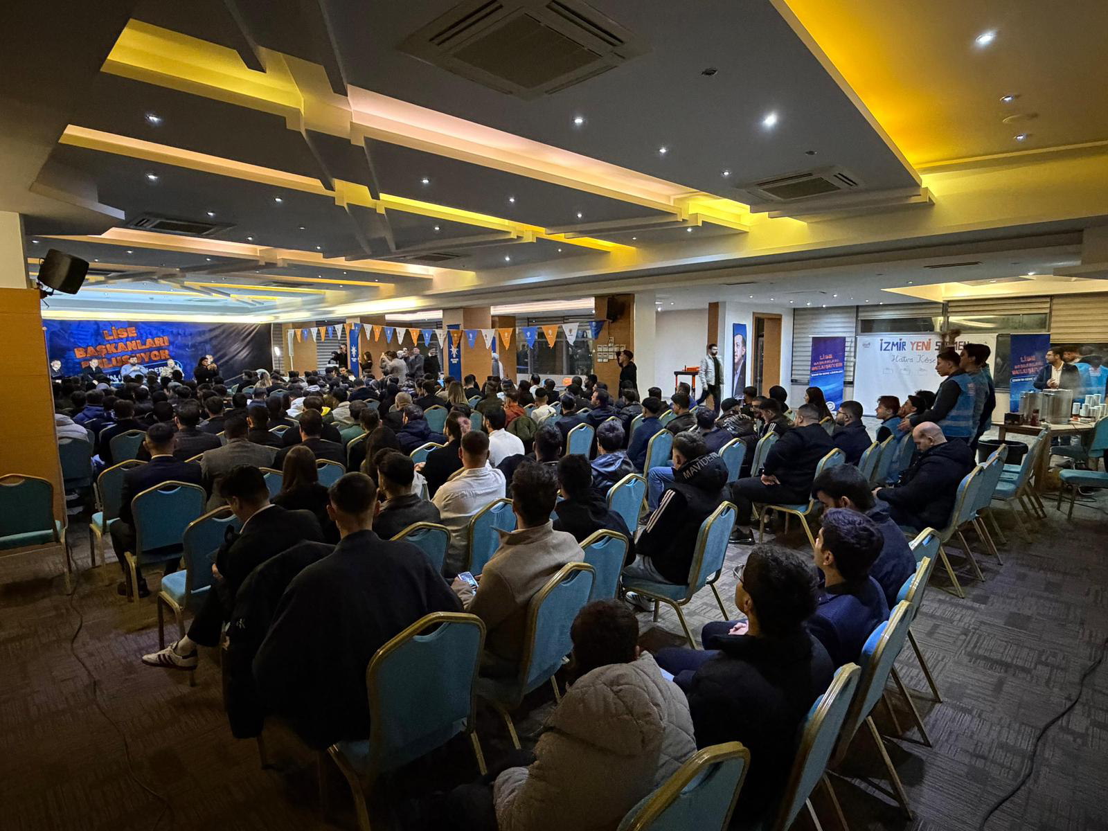 İlk defa oy kullanacak gençlerin yoğun ilgi gösterdiği buluşmaya; AK Parti İzmir İl Gençlik Kolları Başkanı Mehmet Emin İçelli, İzmir Büyükşehir Belediyesi AK Parti Grup Başkan Vekili Hakan Yıldız ve AK Parti Genel Merkez Gençlik Kolları Yeni Seçmen Başkanı Tolunay Kutluay katıldı.