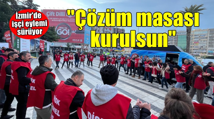 "Bugün mücadelenin üçüncü günündeyiz. Almış olduğumuz karar doğrultusunda Konak Pier'den Basmane Kapısı'na, şirkete iade olup aylardır evine ekmek götüremeyen arkadaşlarımızla yürüyüşümüzü gerçekleştirdik. Bugün üçüncü gün hala masa kurulmuyor. Biz kurumları gezerek destekler için ziyarette bulunmaya başladık. Mücadelemize destek verilmesi ve masanın kurulması için destek isteyeceğiz. Bazı kapılar var çalınır... Edirne'den Hakkari'ye herkesin gördüğü yerde milletvekillerimizin de gelip seçmenlerine emekçiye destek vermesi gerekir. Ancak bu saate kadar hiçbir mikketvekili gelip omuz atmadı. Biz mücadeleden kaçınan bir yapı değiliz. Önümüzdeki haftanın programını da hazırlayacağız. 350 arkadaşımız işinden edilmiş... Bu mağduriuet ortadan kaldırılmada mücadele bitmeyecek. Buradan İzmir Büyükşehir Belediye Başkanı'na tekrar sesleniyoruz. Kimsenin gelip bu masayı kurmasına gerek yok. Bizler sizlerle uyum içerisinde bu süreci götürmek istiyoruz. Önümüzde üç yıl var üç yılda bu masayı beraber kurmak zorundayız bu mağduriyet ortadan kalksın. Bu mücadeleyi sürdüreceğiz."