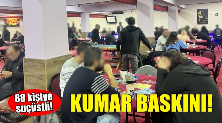 İzmir İl Jandarma Komutanlığı'na bağlı ekipler, Bornova'daki bir işletmede kumar oynatıldığı bilgisi üzerine operasyon yaptı. Adrese giden ekipler 88 kişiyi kumar oynarken suçüstü yakaladı. Şahıslara toplam 536 bin 840 TL idari para cezası uygulanırken, 1 kişi hakkında ise ''kumar oynamak için yer ve imkan sağlamak'' suçundan adli işlem başlatıldı.