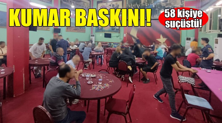 Ekiplerce yapılan kontrolde kumar oynadığı belirlenen 58 kişiye 372 bin 650 lira ceza kesildi.