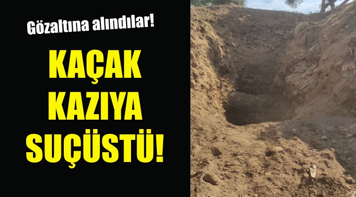 Alınan bilgiye göre Arıkbaşı Mahallesinde zeytinlik alanda iş makinesi ile kaçak kazı yapan 2 kişiyi gören mahalle sakinleri durumu jandarmaya bildirdi. Bölgeye giden jandarma ekipleri, 12 metre derinliğinde çukur kazan 2 kişiyi suçüstü yakaladı.