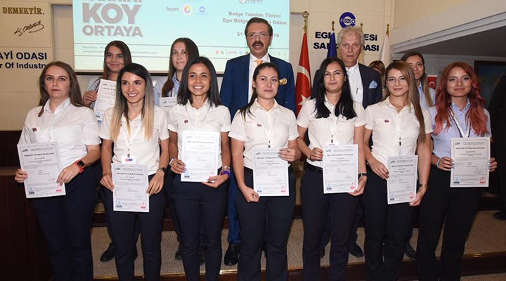 TOBB öncülüğünde yapılan, Avrupa Birliği (AB) tarafından finanse edilen Mahir Eller Projesi'nde mesleki yeterliliklerini tamamlayanlar için EBSO'da tören düzenlendi. İzmir'de 3 bin kişiye istihdamın sağlanacağı Mahir Eller Projesi'nin belge dağıtım toplantısına; İzmir Valisi Erol Ayyıldız, İzmir Büyükşehir Belediye Başkanı Tunç Soyer, TOBB Başkanı Rifat Hisarcıklıoğlu, EBSO Başkanı Ender Yorgancılar ile iş insanları ve kursiyerler katıldı. Ender Yorgancılar, projenin 12 ilde yürütüldüğünü belirterek, İzmir'in toplu taşımada kullanılan hafif raylı sistem çalışanı kadınlar sayesinde 'Türkiye'de en fazla sayıda belgeli kadın tren sürücüsüne sahip il' unvanını elde ettiğini söyledi. Yorgancılar, şöyle konuştu: