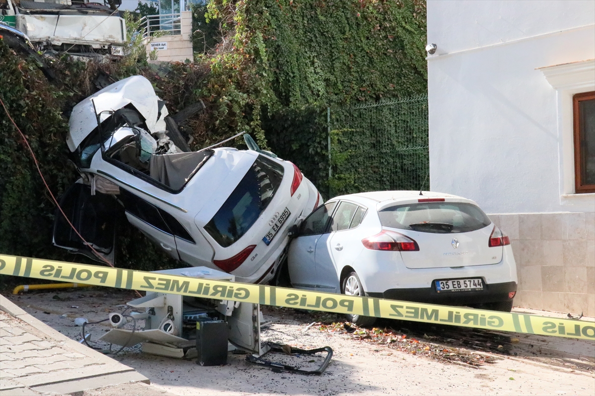 Erdal İnönü Caddesi'nden yokuş aşağıya inen eşya yüklü 35 U 8231 plakalı kamyon, Zeytin Sokağı'ndan gelen Salih K. yönetimindeki 35 EA 6995 plakalı otomobile çarpıp, otomobili bariyerlere doğru sürükledi. Beton bariyerleri de geçen otomobil, yolun yaklaşık 3 metre aşağısında bulunan site bahçesinde park halindeki bir otomobilin üzerine düştü. Kamyon ise site bahçesine düşmeden durabildi. Kazada otomobil sürücüsü Salih K. ile kamyondaki 6 kişi yaralandı.