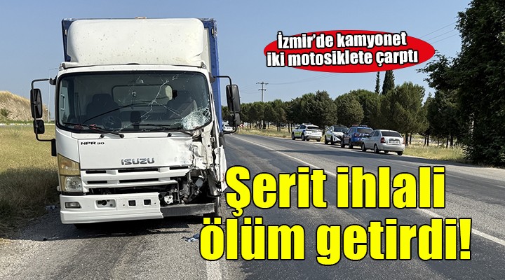 M.K'nin (41) kullandığı 45 EC 812 plakalı kamyonet, Tire-Torbalı kara yolunda karşı yönden gelen Hüseyin Barış (34) idaresindeki 35 AVS 465 plakalı motosiklet ve T.E. (39) yönetimindeki 35 YDS 40 plakalı motosiklete çarptı.