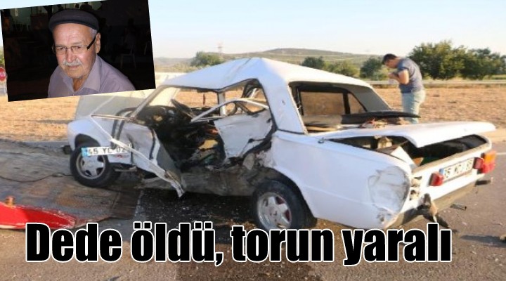 Kaza, dün saat 18.30 sıralarında Kınık- Bergama karayolu Dündarlı Kavşağı'nda meydana geldi. Kınık'a bağlı kırsal Kocaömer Mahallesi'nde oturan emekli Uzman Çavuş Muharrem Keskin, torunu Ravza Keskin' i gezdirmek amacıyla kendine ait 35 MCJ 85 plakalı otomobil yola çıktı. Kavşaktan geri dönmek isteyen Keskin yönetimindeki otomobile, arkadan gelen H.A. (68) yönetimindeki 45 YC 0215 plakalı otomobil çarptı. Kazada, Muharrem Keskin ve Ravza Keskin yaralandı. İhbar üzerine kaza yerine sevk edilen ambulansla yaralılar, Bergama Necla Mithat Öztüre Devlet Hastanesi'ne kaldırıldı. Tedaviye alınan yaralılardan Muharrem Keskin, doktorların tüm çabasına karşın kurtarılamadı. Ravza Keskin'in sağlık durumunun iyi olduğu belirtildi.