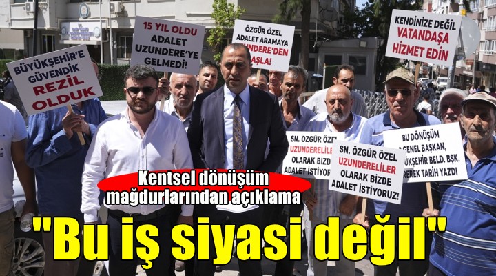 "Türkiye'nin örnek projesi' denilen bu süreç, iki CHP Genel Başkanı ve 3 İzmir Büyükşehir Belediye Başkanı dönemine rağmen tam bir fiyaskoyla sonuçlandı. Tapulu arsalarımız üzerinden kooperatif adı altında satışlar yapıldı, paralar toplandı ancak inşaatlar bitirilmedi. Hak sahipleri evsiz bırakılırken, aynı arsalarda başkalarına konut satışı yapılarak yeni mağduriyetler yaratıldı. Bugün hakkımızı hukuki yollarla aramaya kalktığımızda, 'bu iş siyasi' denilerek sorumlular, siyasi söylemlerin arkasına saklanıyor. Sayın Özgür Özel, defalarca ilettiğimiz çağrılarımıza rağmen İzmir'in bu kangrenleşmiş sorununa neden kulak vermiyorsunuz? 15 yıldır evsiz kalan, tapuları ellerinden alınan insanların haklı mücadelesini nasıl görmezden gelebilirsiniz."