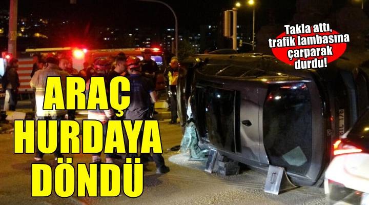 Kaza, saat 21.30 sıralarında Nursultan Nazarbayev Caddesi'nde meydana geldi. Karşıyaka’dan Bornova istikametine seyir halinde olan A.K.Ö. yönetimindeki 35 BTC 176 plakalı otomobil, Smyrna Meydanı kavşağında kontrolden çıktı. Sürücüsünün direksiyon hakimiyetini kaybetmesi sonucu takla ata otomobil, trafik lambasına çarparak durabildi. Kazayı gören vatandaşların ihbarı üzerine bölgeye sağlık, polis ve itfaiye ekipleri sevk edildi. Otomobilde sıkışan sürücü A.K.Ö., itfaiye ekiplerinin çalışmasıyla çıkarılıp, sağlık görevlilerine teslim edildi. Yaralı sürücü ilk müdahalenin ardından Ege Üniversitesi Hastanesi'ne kaldırıldı. A.K.Ö.’nün durumunun iyi olduğu öğrenildi.