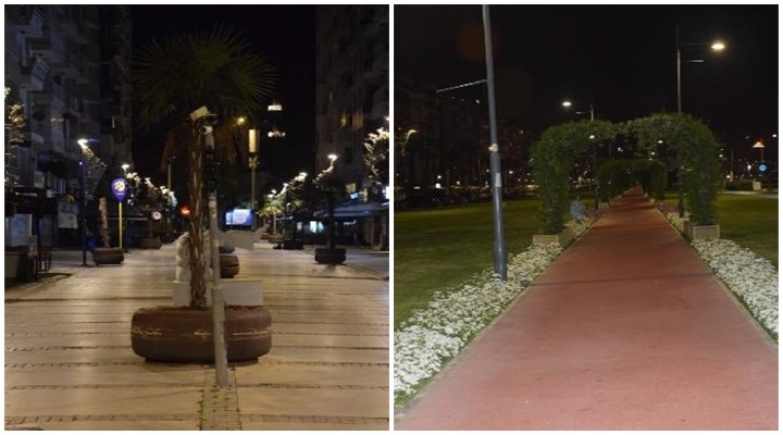 Kısıtlamanın bulunduğu iller arasında yer alan İzmir'in en işlek cadde ve meydanları, yasağın başlamasıyla boş kaldı.