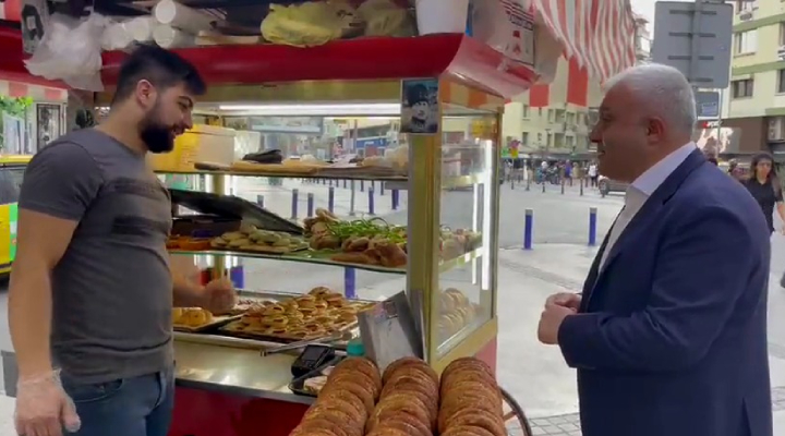 CHP Genel Başkan Başdanışmanı ve İzmir Milletvekili Tuncay Özkan, İzmir Alsancak’ta sokağın ekonomisini yansıtmak için belirli aralıklarla tezgahına gidip sohbet ettiği gevrekçi Rojhat Akçakale’ye, fiyatları ve yeni zam gelip gelmediğini sordu.