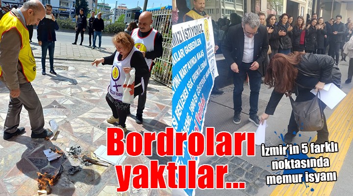 SONKALEİZMİR-Büro Emekçileri Sendikası (BES) İzmir Şubesi üyesi memurlar bugün kentin 5 farklı noktasında bordro yakma eylemi yaptı. Memurlar, Gaziemir Vergi Dairesi, Çiğli Yamanlar Vergi Dairesi, Bornova İŞKUR önü, Konak Sosyal Güvenlik Kurumu önü ve İzmir Adliyesi önünde toplanıp bordrolarını yakarak hükümete tepki gösterdi.