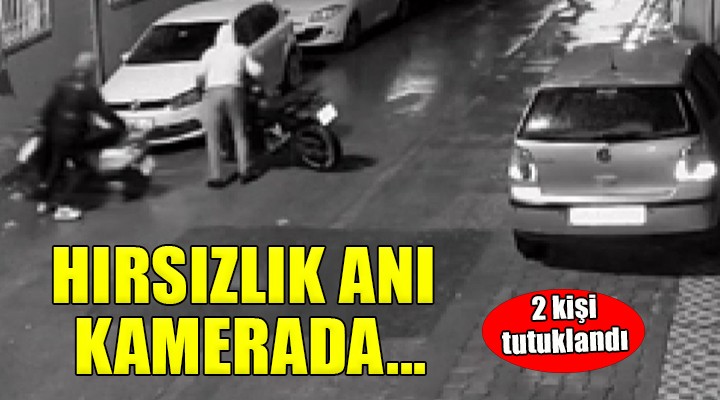 Güvenlik kamerası görüntülerine şüphelilerin yan yana park halindeki iki motosikleti çalmaları yansıdı.