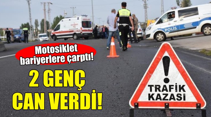 Barış Aydın (18) yönetimindeki 35 BNV 769 plakalı motosiklet, sürücünün direksiyon hakimiyetini kaybetmesi sonucu Çeşme-İzmir Otoyolu'nun Karaburun Gişesi yakınında bariyere çarptı.