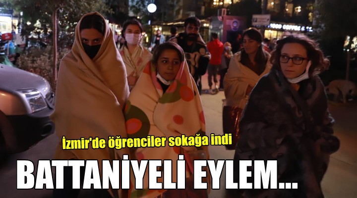 SONKALEİZMİR-İzmir'de yüksek ev kiraları, yetersiz Kredi Yurtlar Kurumu (KYK) yurtları ve pahalı özel yurtlar nedeniyle 10 gündür "Barınamıyoruz, sokaktayız" eylemi yapan ve parkta sabahlayan öğrenciler bu kez battaniyelerini alıp sokaklara indi.