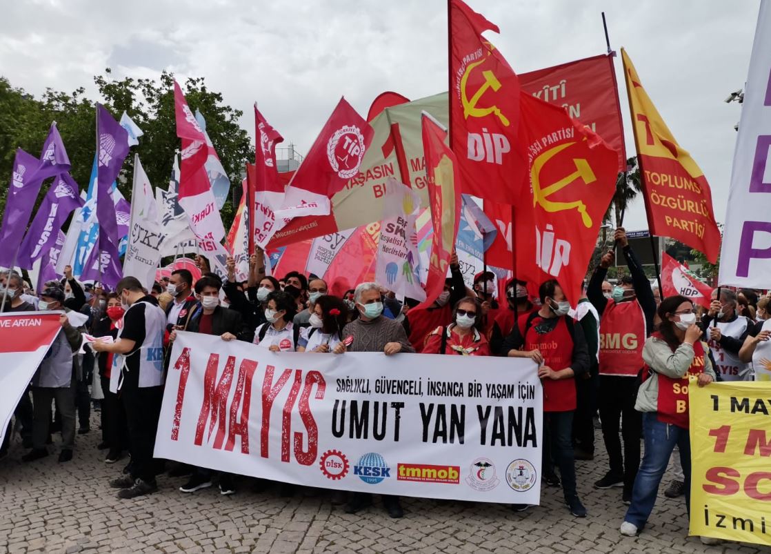 "Yasaklara, baskılara rağmen 1 Mayıs için umudu büyütüyoruz. Çürümüş düzene karşı yeni bir düzen için yan yanayız. Eşitsizlik, yoksulluk dışında hiçbir şey sunmayanbu düzenin koronavirüs aşısını ticari meta haline getirmesinin bedelini insanlık ödüyor. Çalışanları hastalığa, çalışmalarlar açlığa mahkum ediliyor. Pandemi döneminde yurttaşına en az destek veren iki ülkeden biriyiz. Milyonlarca kişi günde 50 liraya yaşamaya mahkum ediliyor. Faturalar kabarıyor. Çarşı pazar alışverişi her geçen gün zorlaşıyor. Buradan isteklerimizi iletiyoruz. Herkese aşı, gelir desteği sağlansın. Hastalanan sağlık emekçileri için koronavirüs meslek hastalığı olsun. Kod 29 zulmüne son verilsin. Kanal İstanbul'a, betona değil sosyal desteklerle bütçe ayrılsın."