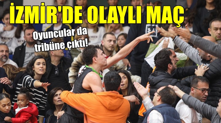ENKA Spor Salonu'ndaki müsabakanın bitimine 50 saniye kala alınan mola sırasında Manisa Büyükşehir Belediyesporlu oyuncuların ailelerinin bulunduğu bölümle Aliağa Petkimspor tribünleri arasında kısa süreli bir gerginlik yaşandı.