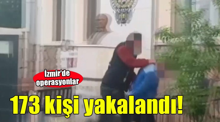 İzmir İl Emniyet Müdürlüğü ekipleri, il genelinde hakkında kesinleşmiş hapis cezası ve aranması olan kişilerin yakalanmasına yönelik dün sabah il merkezi ve dış ilçelerde görev yapan 208 personelin katılımıyla şafak operasyonu yaptı. Eş zamanlı 100 adrese yapılan ve 24 saat süren operasyonda 'Hırsızlık', 'Öldürme', 'Yaralama', 'Yağma', 'Uyuşturucu madde ticareti yapma/kullanma', 'Dolandırıcılık', 'Cinsel suçlar', 'Vergi Usul Kanunu'na muhalefet' gibi çeşitli suçlardan aranma kaydı olan toplam 173 şüpheli yakalandı. Ayrıca aramalarda 1 ruhsatsız tabanca ele geçirildi. Şüphelilerin polisteki işlemlerinin sürdüğü bildirildi.