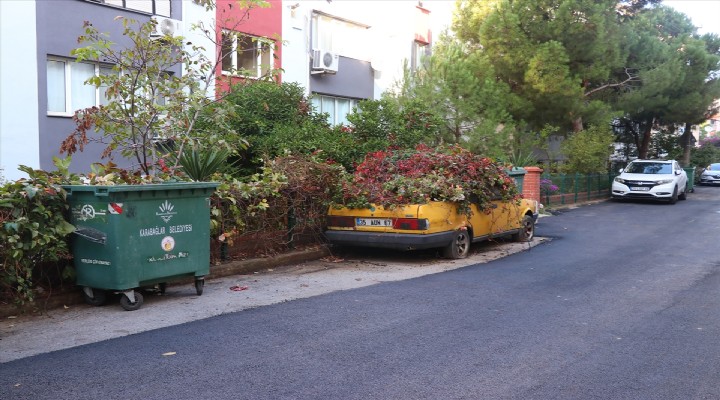 Üçkuyular Mahallesi'nde ikamet eden Mustafa Artun, "Yaklaşık 3 yıldır burada yaşıyorum. Otomobilin üzerindeki sarmaşıklar daha kısaydı. Lastikleri de biraz şişikti ama son hali bu. Kaderini bekliyor." dedi.