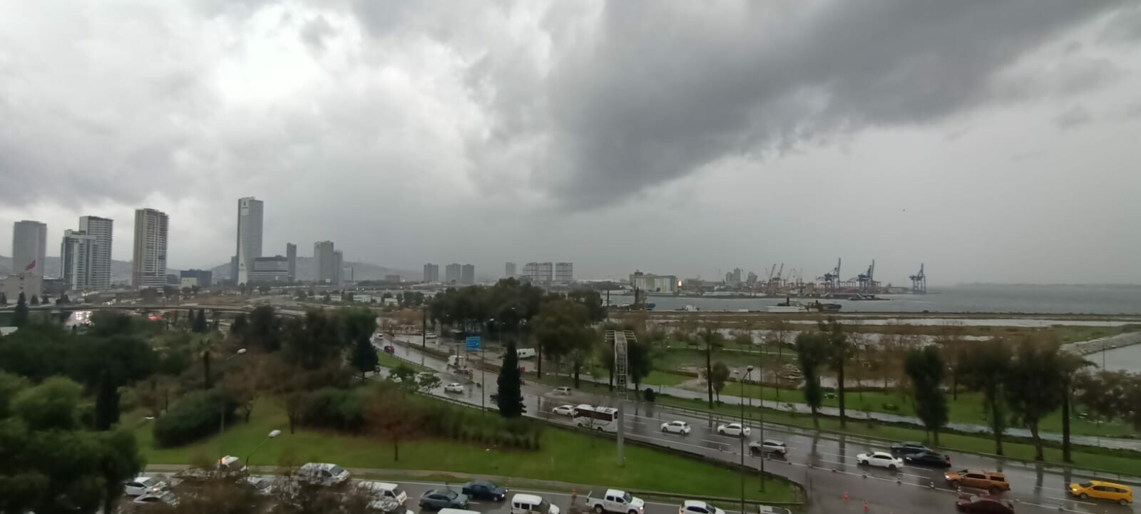 İzmir'de sağanak ve kuvvetini artıran rüzgar, kent genelinde etkisini sürdürüyor. Kuvvetli rüzgar nedeniyle kentin en yoğun yerlerinden olan Konak ilçesindeki Alsancak kordon boyunda deniz taştı. Taşan su, kaldırımla birleşti. Rüzgar sebebiyle deniz ulaşımının yapılamadığı kentte, Alsancak Limanı’nın çevresi sularla doldu. İzmir Büyükşehir Belediyesi tarafından inşa edilen geçici fırtına duvarı sayesinde taşan deniz suları hem çim alana hem de iş yerlerine ulaşamazken, herhangi bir baskın yaşanmadı.