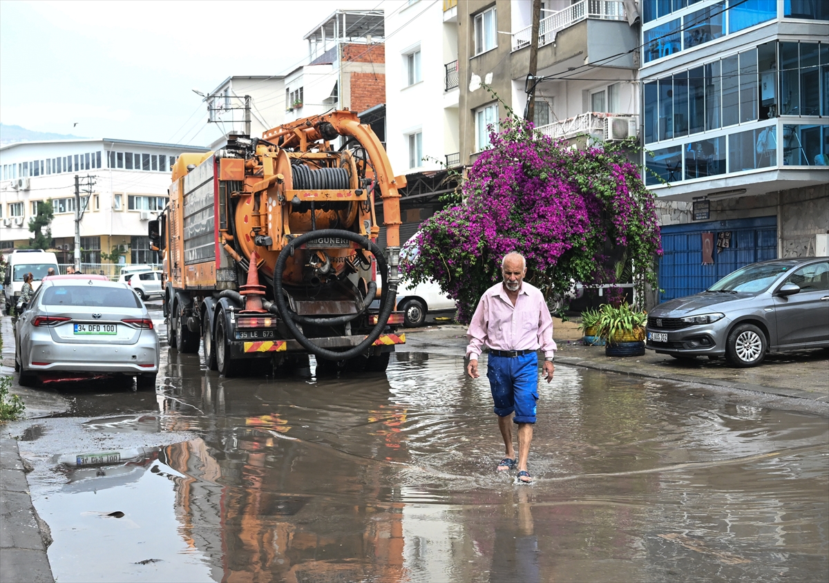 İzmir İtfaiyesi ve İZSU ekipleri, su baskınından etkilenen yerlere müdahale etti.