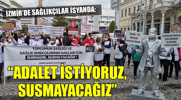 SONKALEİZMİR-İzmir Sağlık Platformu, sendika temsilcileri ve sağlık emekçilerinin katılımı ile Konak Atatürk Meydanı'nda düzenlenen basın açıklaması ile hükümete seslendi. Yaklaşık 50 kişi "Korona değil, kapitalizm öldürüyor", "Daha fazla ölüm istemiyoruz", "Alkışlar sağlık çalışanlarının ölümünü engellemedi" yazılı dövizler taşırken, sloganlar atarak taleplerini dile getirdi.
