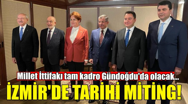 Kılıçdaroğlu, diğer liderler, İmamoğlu ve Yavaş ile ev sahibi İzmir Büyükşehir Belediye Başkanı Tunç Soyer, Gündoğdu Meydanı'nda İzmirliler'e hitap edecek.